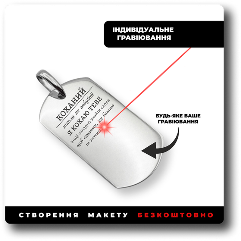 - Індивідуальне гравіювання: нанесемо будь-який текст, ім’я, дату, символ або координати — ви створюєте дизайн, що має значення саме для вас.